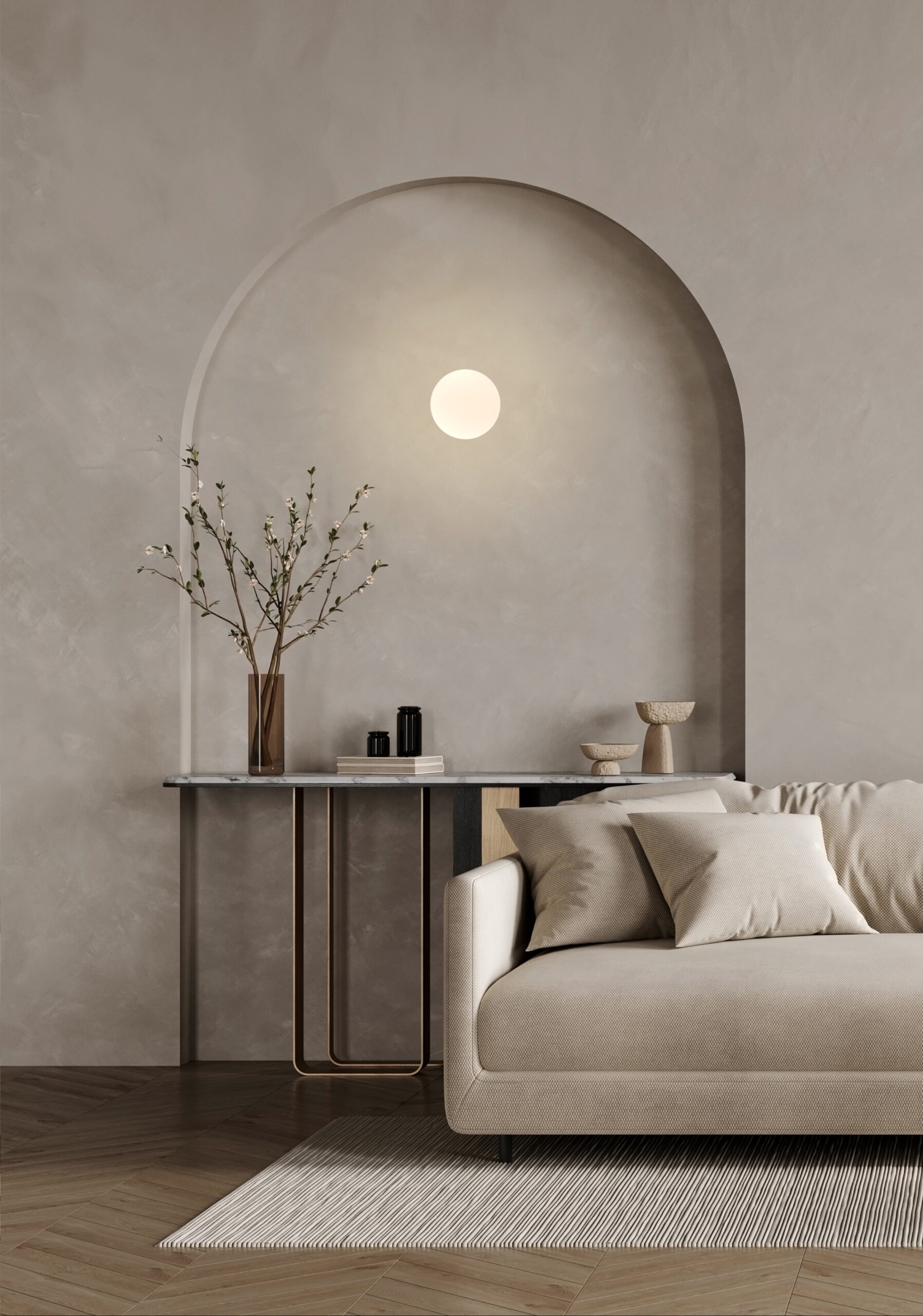 PENSÉE 单纯质朴的模样,在生活百态中表露一丝丝亲切与熟悉。设计师以弦月状的手工口吹玻璃结合盛光的金属器皿,悉心配置玻璃露出面积、裁量灯罩R角线条的比例,让轻喃般的温润暖光自然爬梳每个空间角落,向人们诉说着关于日常的悄悄耳语。